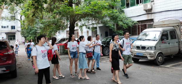 朱朝菊书记(时任班主任)领着员工们开展游校园活动