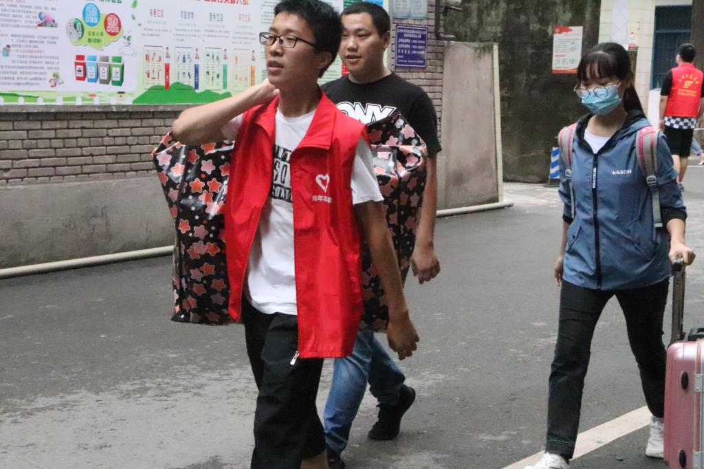 今年化工学院的迎新工作按照学校整体安排,加强了疫情防控工作。学院志愿服务同学引导新生及家长填写行程表,下载扫描健康二维码,检测体温,消杀行李等,确保防控措施落实到位。