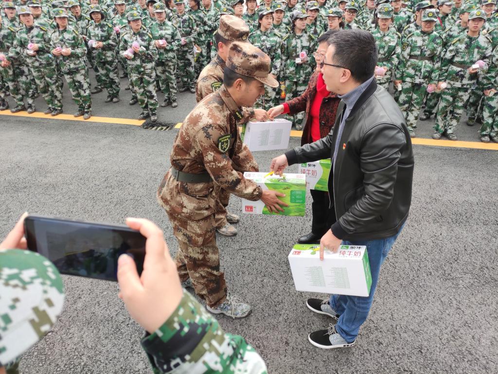 2021年3月23日下午2时,公司党总支书记朱朝菊、副书记潘维、辅导员颜爽赴达州国防基地看望慰问2020级军训同学,员工会主席石雅楠、班助代表王渝陪同前往。
