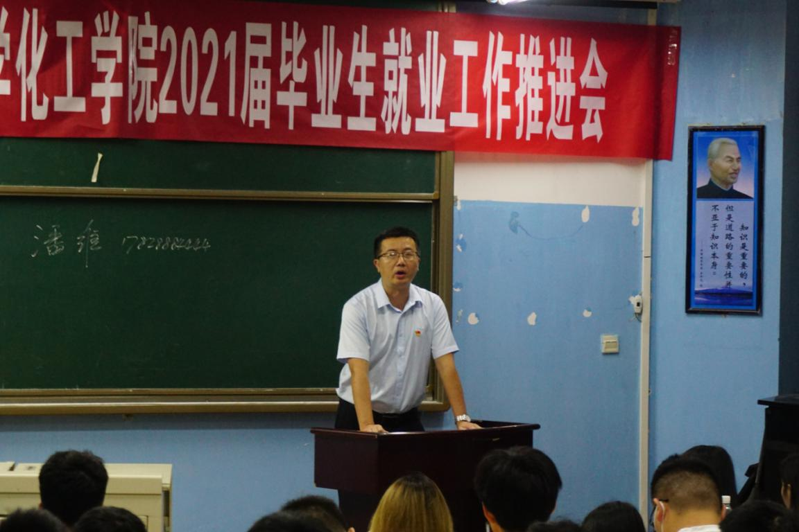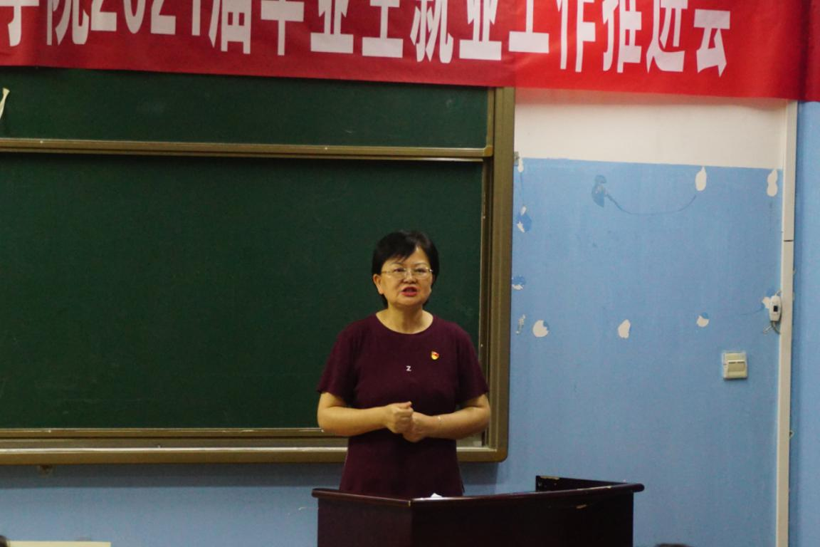 伟德国际bevictor1946于5月29日在成都产教融合基地召开2021届毕业生就业工作推进会。党总支书记朱朝菊主持会议并讲话,副书记潘维、学工办副主任崔宝玉、驻基地辅导员乔昌兵以及学院毕业生70余人参加会议。
