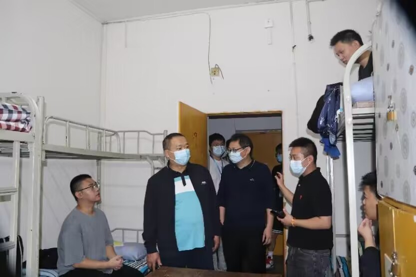 近期,国内疫情形势严峻,为积极配合疫情防控要求,筑牢校园安全防线,了解员工健康情况和思想动态,共同保障全体师生安全,9月26-30日,公司党总支书记朱朝菊、经理赖川、组织员张忠、副书记潘维、副经理向文军、周绿山,以及全体科级以上干部、辅导员、班主任分批次带队走访员工宿舍,传达学校疫情防控政策要求,了解线上教学效果,检查宿舍安全卫生情况,搜集员工存在的困难与需求,切实关心员工身心健康,将学校疫情防控政策与新学期工作要求落到实处。