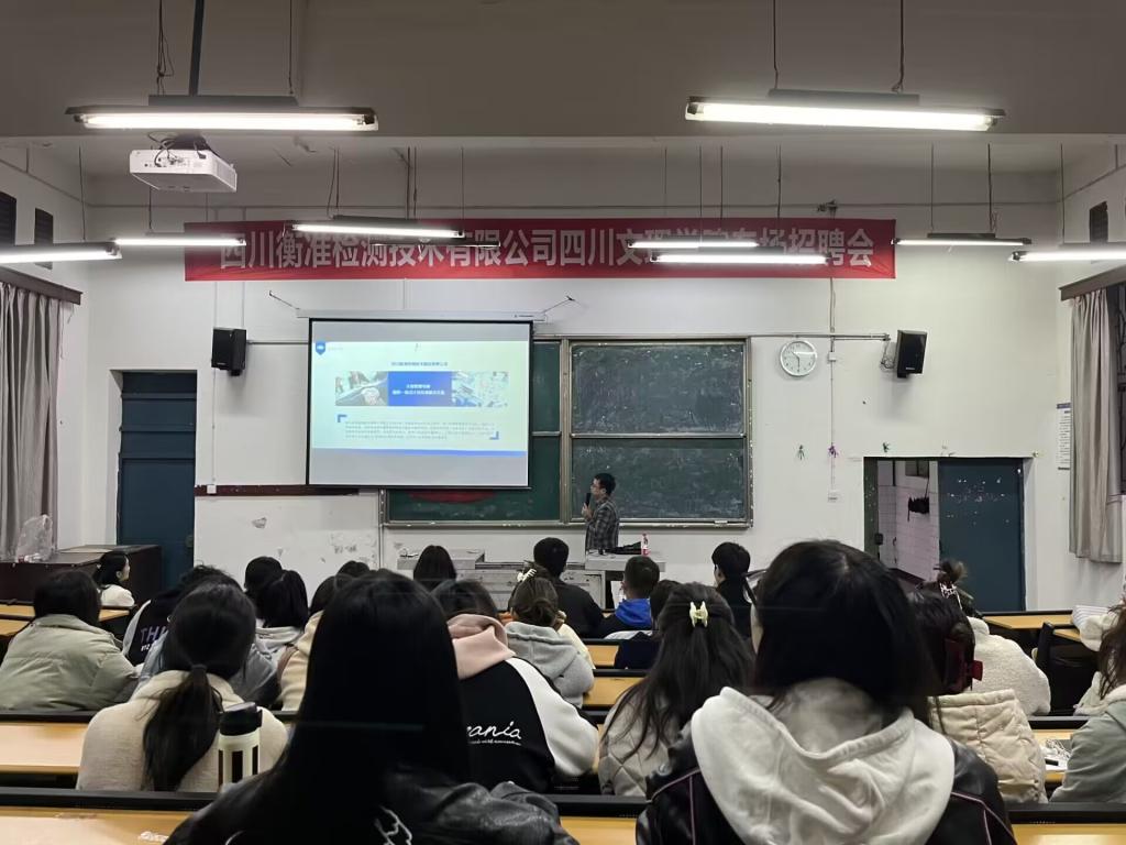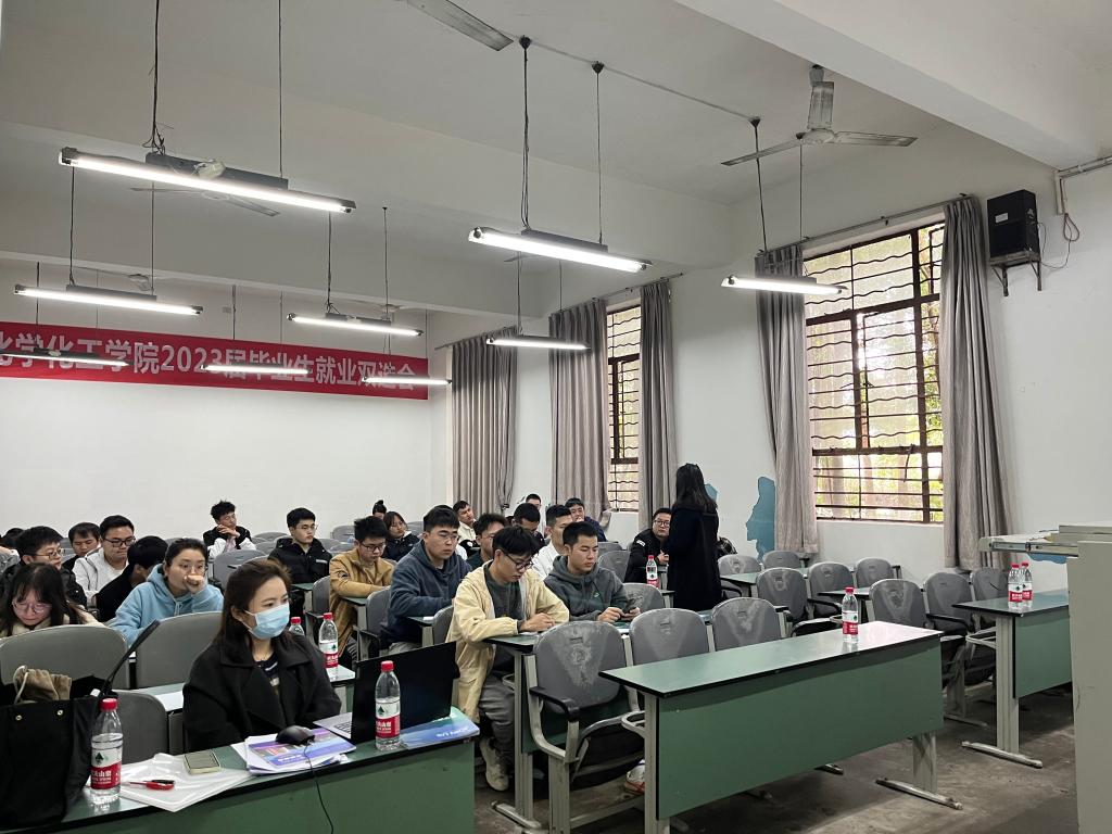 为进一步提高校企合作深度,促进产教融合,给毕业生搭建更好的就业平台,扩大公司毕业生就业渠道,公司于2023年3月16日上午十点半,在南坝校区111教室组织了四川衡准检测技术有限公司的招聘宣讲会;3月17日下午两点半,在南坝校区112教室举办了威顿(中国)化工有限责任公司和福华通达化学股份公司的招聘宣讲会。