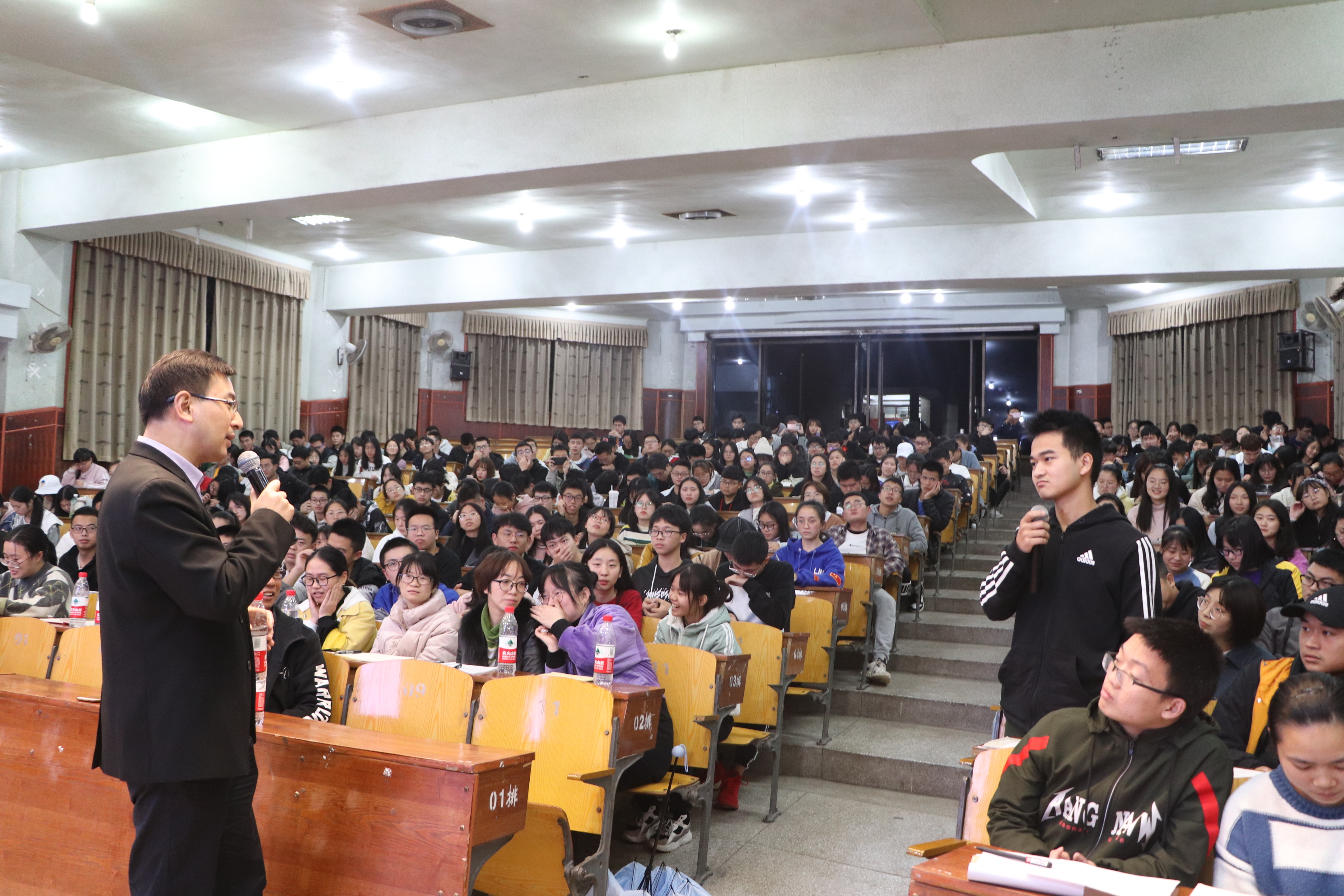 孙旭平教授就“学术”与“励志”两个主题做了专题报告。在报告中,孙旭平教授介绍了课题小组在功能材料表界面设计与调控及催化和传感应用等方面的研究进展。重点内容包括:1、以生物质为原料合成杂原子掺杂的荧光碳点,利用表面氮原子对铜离子的腹肌能力,发展了基于氮掺杂碳点的荧光铜离子传感新策略:2、构建基于富共轭兀电子纳米结构的DNA荧光传感界面;3、采用低温磷化反应实现了无表面活性剂过渡金属磷化物的快速可控制备,发展三维过渡金属磷化物阵列电极,成功用于高效电催化还原氢离子析氢和水氧化;4、发展磷化钴纳米新型荧光淬灭剂,实现了快速、高效DNA检测。在此之后,孙旭平教授建议同学们在学术研究中不能太过于依赖导师,要学会自己创新,自主学习。报告最后,孙旭平教授还与师生们进行了互动交流,深入讨论了化学的有关知识。
