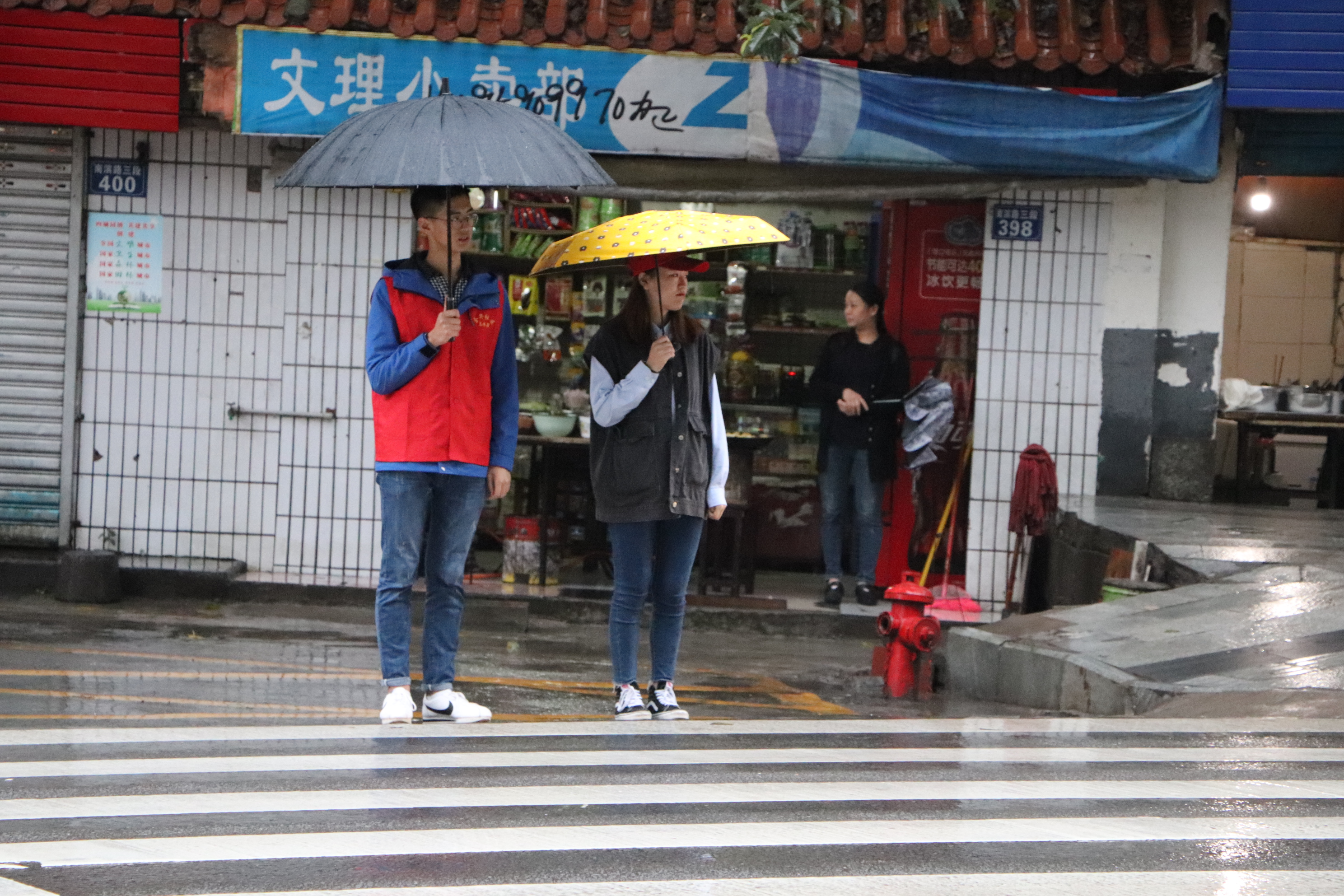 活动伊始前期,志愿者们认真地了解“四城同创”的内容,并充分准备了本次志愿活动所需要的物资。10月21日,志愿者们满怀激情,在金华社区有条不紊地开展活动,分工明确。首先一部分志愿者在人行道劝导行人遵守红绿灯,横穿马路等不文明交通行为;其次还有一部分志愿者在街道上倡导居民、路人不随地乱吐口痰,不乱扔垃圾等行为,以及对街道上乱摆摊的居民们进行了相应的文明劝导;最后剩下另一部分志愿者在道路边劝导驾驶员在道路停车时应该做到不乱停、不乱放,能够按照交通标志文明出行。