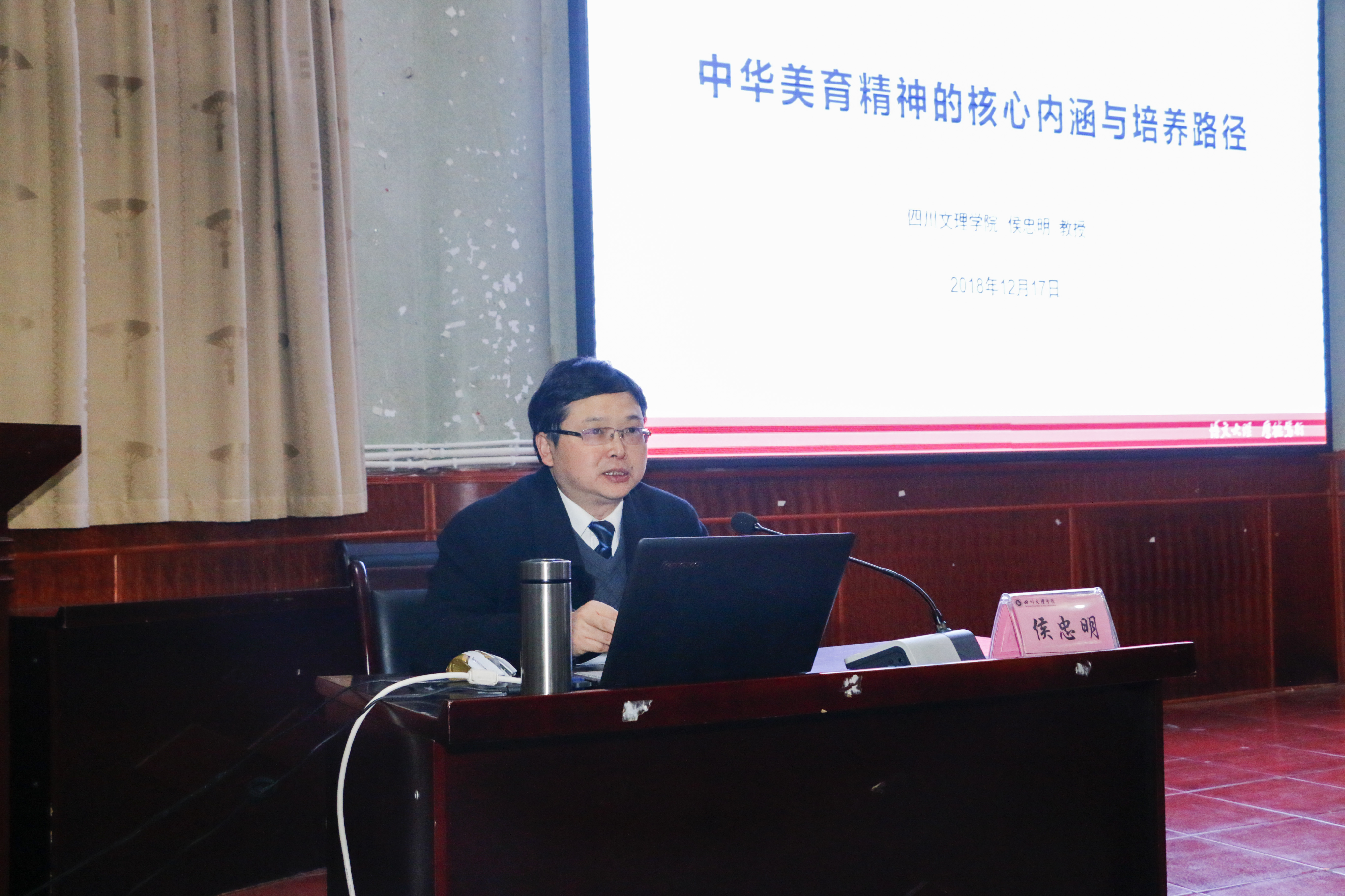 12月17日晚上,四川文理公司党委副书记侯忠明教授在南坝校区学术报告厅作题为《中华美育精神的核心内涵与培养路径》的学术讲座,讲座由公司党总支书记朱朝菊主持。智能制造学院、伟德国际bevictor1946300余名师生聆听讲座。