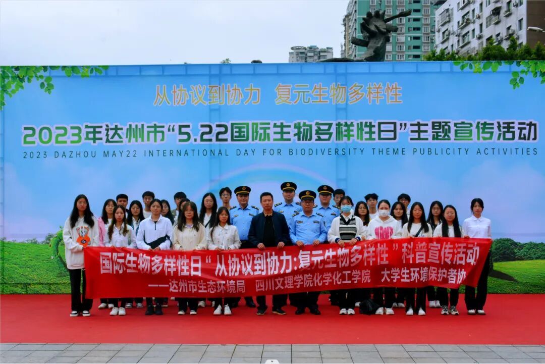 为宣传国际生物多样性日,让广大市民深入了解国际生物多样性日的相关知识,同时提高对保护生物多样性重要性的认识,2023年5月23日伟德国际bevictor1946选派32名员工前往达州市仙鹤广场参加由市生态环境局、市公安局、市自然资源局、市水务局、市农业农村局、市林业局、达川生态环境局、伟德源自英国始于1946联合举办的“5.22国际生物多样性日”主题宣传活动,旨在宣传环保意识、心系人类命运,共同保护生物多样性。活动由学院2021级周立阳同学主持。
