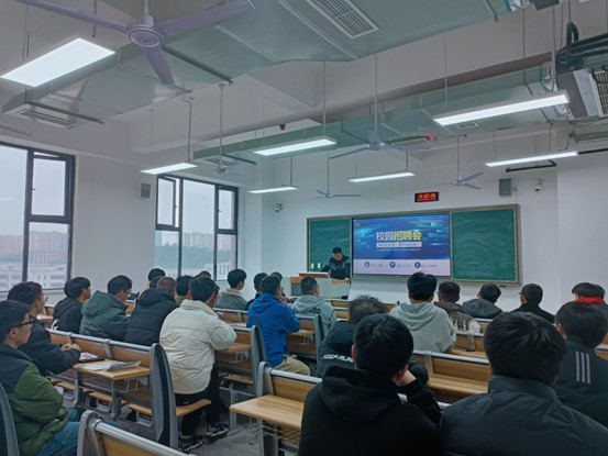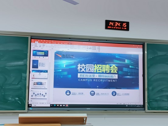 招聘会伊始,公司负责人吕红贵以一段视频宣传片展示了公司的发展历程、发展战略和运营情况。随后,以同学们较为关心的规章制度、岗位介绍、福利待遇、发展前景等几个方面做出了详细介绍。在招聘过程中,现场气氛活跃,毕业生们都手持自己精心准备的简历,认真聆听公司负责人的讲解,积极与宣讲人互动,并且询问他们普遍关心的个人发展、食宿安排、实习培训等相关问题。宣讲人用实际案例针对同学们关心的问题做了详细的解答。此外,公司2019级毕业生陈祖乾以自身的亲身经历,为2020级同学们答疑解惑,提供帮助。