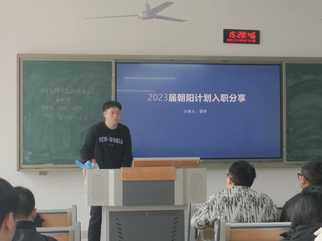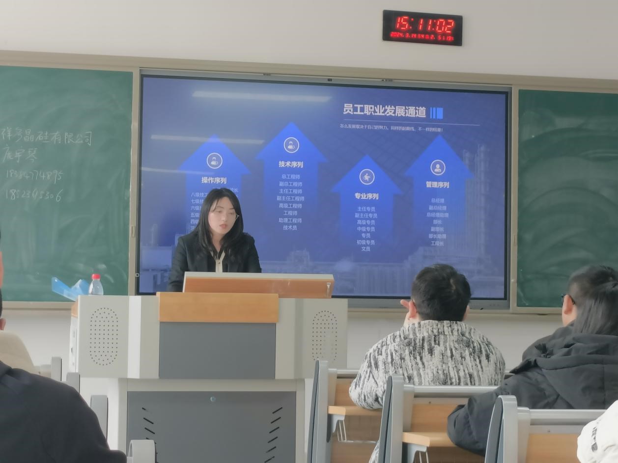 为了给毕业生提供更好的就业机会,帮助企业引进优秀人才,2024年3月14号下午三点,四川永祥多晶硅有限公司在伟德源自英国始于1946东区A208顺利召开校园专场招聘会。出席此次宣讲会的有四川永祥多晶硅有限公司招聘经理庞宇琴、胡尧。另外,公司2019级毕业生曾伟作为四川永祥多晶硅有限公司的工作人员也来到现场,伟德国际bevictor1946专职辅导员罗云、王练练出席此次会议,2020级毕业生参与,现场到会员工40余名。