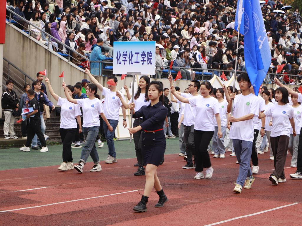 开幕式上,伟德国际bevictor1946方队以饱满的热情,伴随着音乐步入运动场,他们迈着整齐的步伐,喊着响亮的口号,充分展示了化院学子团结奋进、积极向上的良好风貌和体育素养。随后,方队同其他学院一起展示了充满活力和动感激情的舞蹈,青春的光芒熠熠生辉。