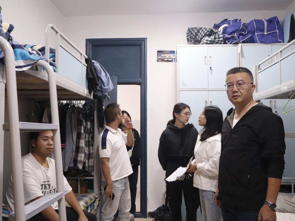 在走访过程中,老师们仔细查看了各员工寝室的卫生情况、物件整理以及用电的安全情况,对整洁干净的寝室给予了表扬,对存在问题的寝室提出了整改要求。潘维副书记针对寝室情况提出几点要求:一是要寝室地面和床铺要保持整洁,营造出良好的生活环境;二要员工要按时作息,杜绝没课期间卧床不起;三要注意用电安全,严禁使用违规电器;四要寝室内保持通风良好,营造一个健康舒适的寝室环境。