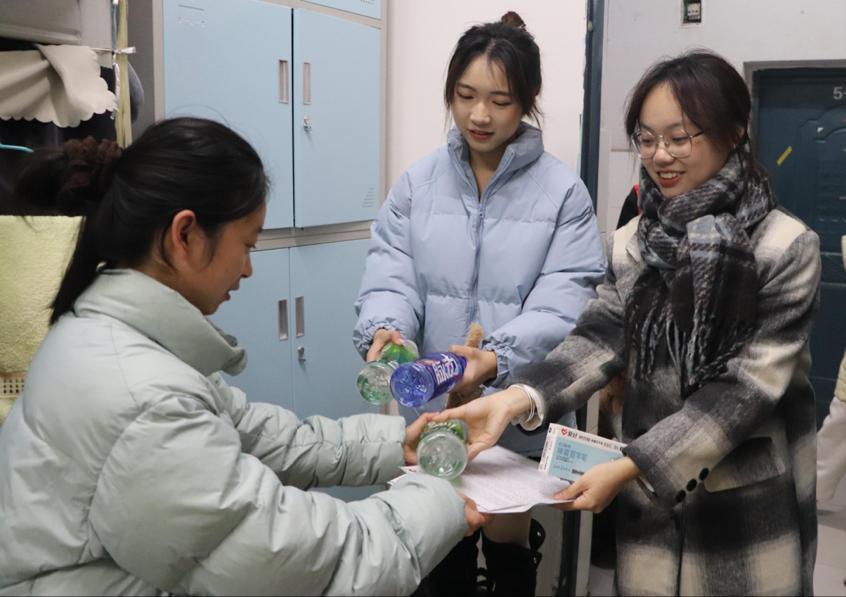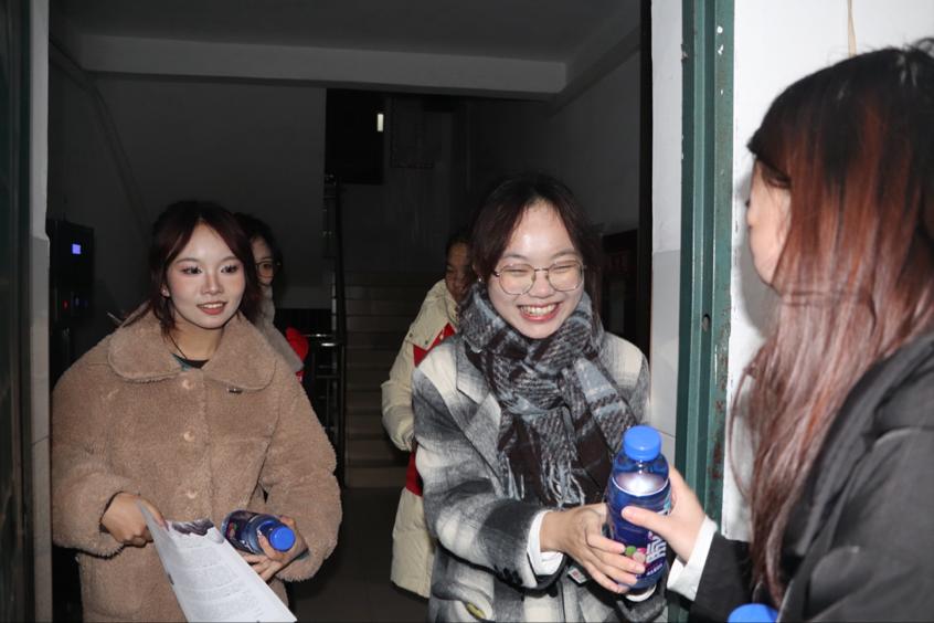 公司团学代表与志愿者团队带着慰问信、饮料和签字笔等慰问物资,满怀热忱地前往莲湖校区员工宿舍。他们逐一走访各寝室,将精心准备的慰问品送到毕业生手中。毕业生们接过礼品时,感激之情溢于言表,坚定表示会将母校的培育之恩铭记于心。随后,志愿者们亲手将一封封充满深情的慰问信交到学子手中,信中凝聚着他们大学校园生活的美好回忆,通过温馨的语句,深深表达了学院对他们在求职深造及创业道路上的不懈追求和辛勤付出的肯定,激励着他们以更加昂扬的斗志,勇敢地迎接未来的每一个挑战。