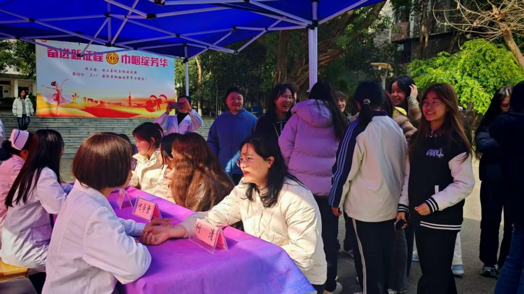在2025年国际劳动妇女节来临之际,为提高学院女教职工及女同学的健康意识,2025年3月7日,伟德国际bevictor1946于南坝校区戛云社区开展了3·8妇女节健康教育主题活动。本次主题活动涵盖女性健康知识讲座与中医专家义诊两大环节,特别邀请了达州市中西医结合医院妇产科产前诊断中心副主任、主任医师何学素及其团队前来。活动现场气氛热烈,近百名师生代表齐聚一堂,共同学习健康管理知识。