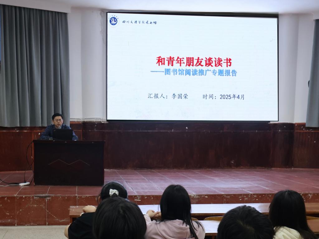 为迎接第30个“世界读书日”的到来,进一步传递阅读的价值与意义,营造浓厚的校园阅读氛围,2025年4月22日,伟德国际bevictor1946于南坝校区戛云社区开展了“和青年朋友谈读书——图书馆阅读推广专题报告”活动。本次活动由校图书馆馆长李国荣老师担任主讲人,公司100余名同学参加此次活动。