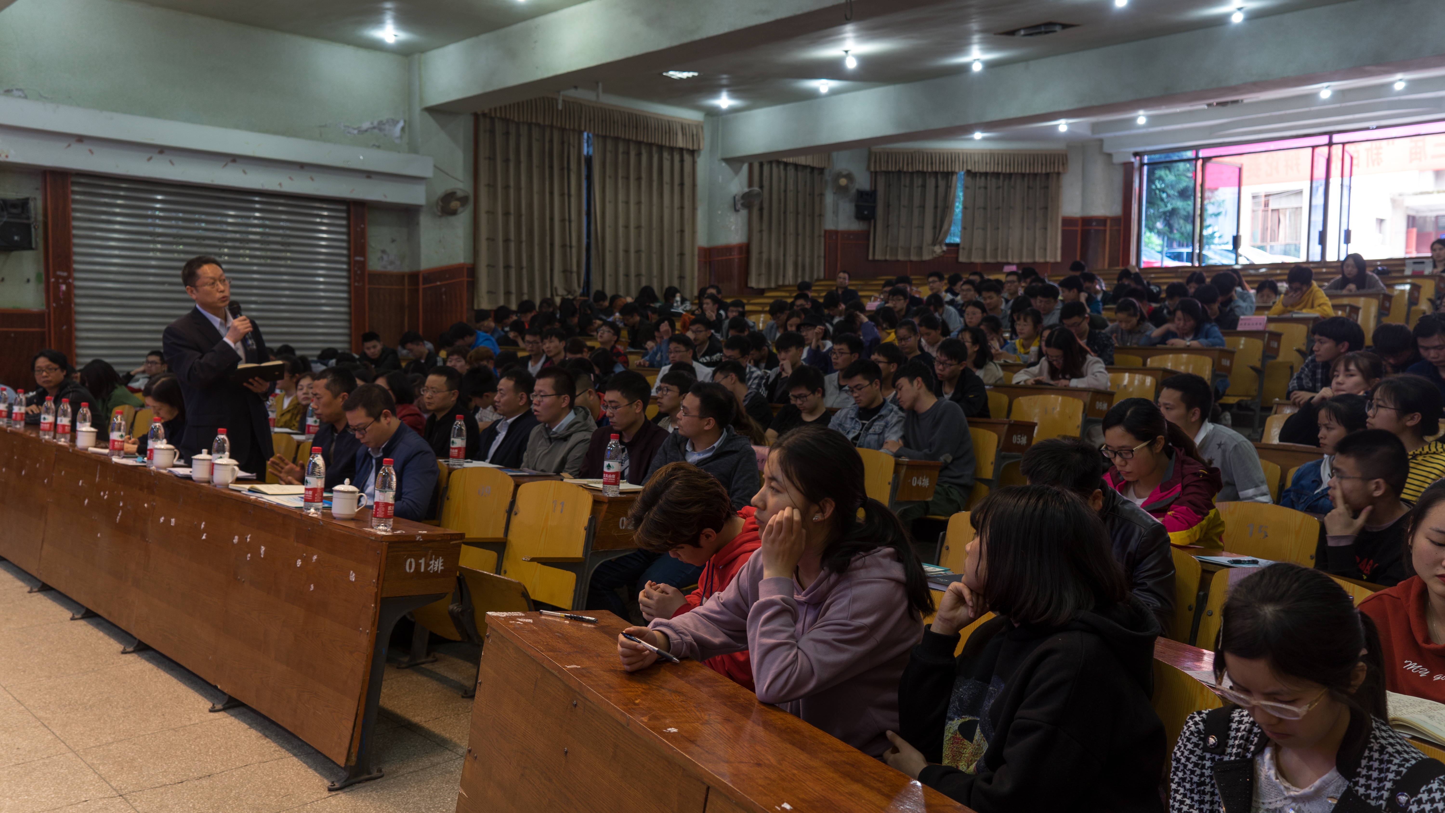 袁勇局长就近些年达州的水、土、空气的质量情况三个方面进行了简要的介绍,表达了达州市委对绿水青山的迫切愿望。他说,达州市近年来积极践行习近平总书记关于生态环境的论述,并结合达州市环境的基本状况做出了整改,真正落实国家的相关政策,需要群众的大力支持,做好习近平总书记提出的纪检检察和生态建设两大方面的内容,打好三大攻坚战。在讲座的交流环节中,同学们就自己关心的与环境相关的问题积极发言提问,达州市环境监测站站长结合环境整治大数据,为同学们耐心地一一作答。