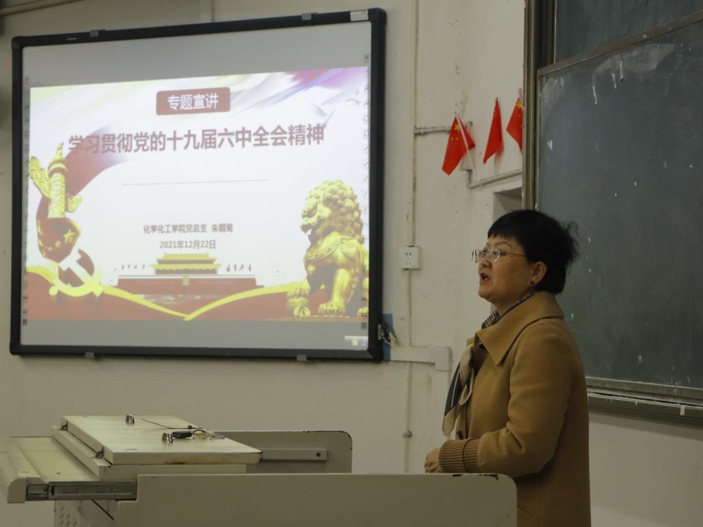 为深入学习贯彻党的第十九届六中全会精神和省十一届十次全会精神,20211222日下午17:10,公司党总支书记朱朝菊在一教楼100教室作“党的第十九届六中全会精神”专题宣讲,学院全体教职工和部分员工党员参加此次宣讲会议。